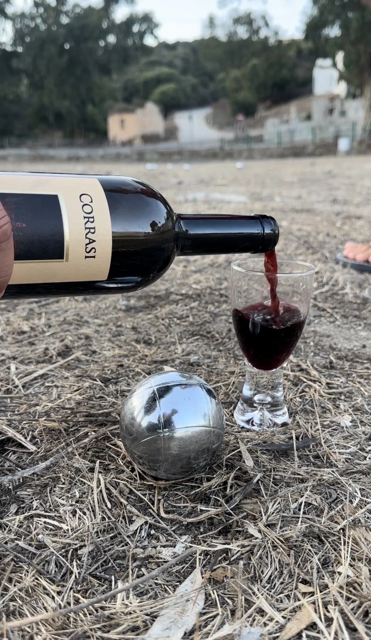 Playing “petanque” paired with Sardinian Nepente’s Canonao wine at Asinara National Parc .